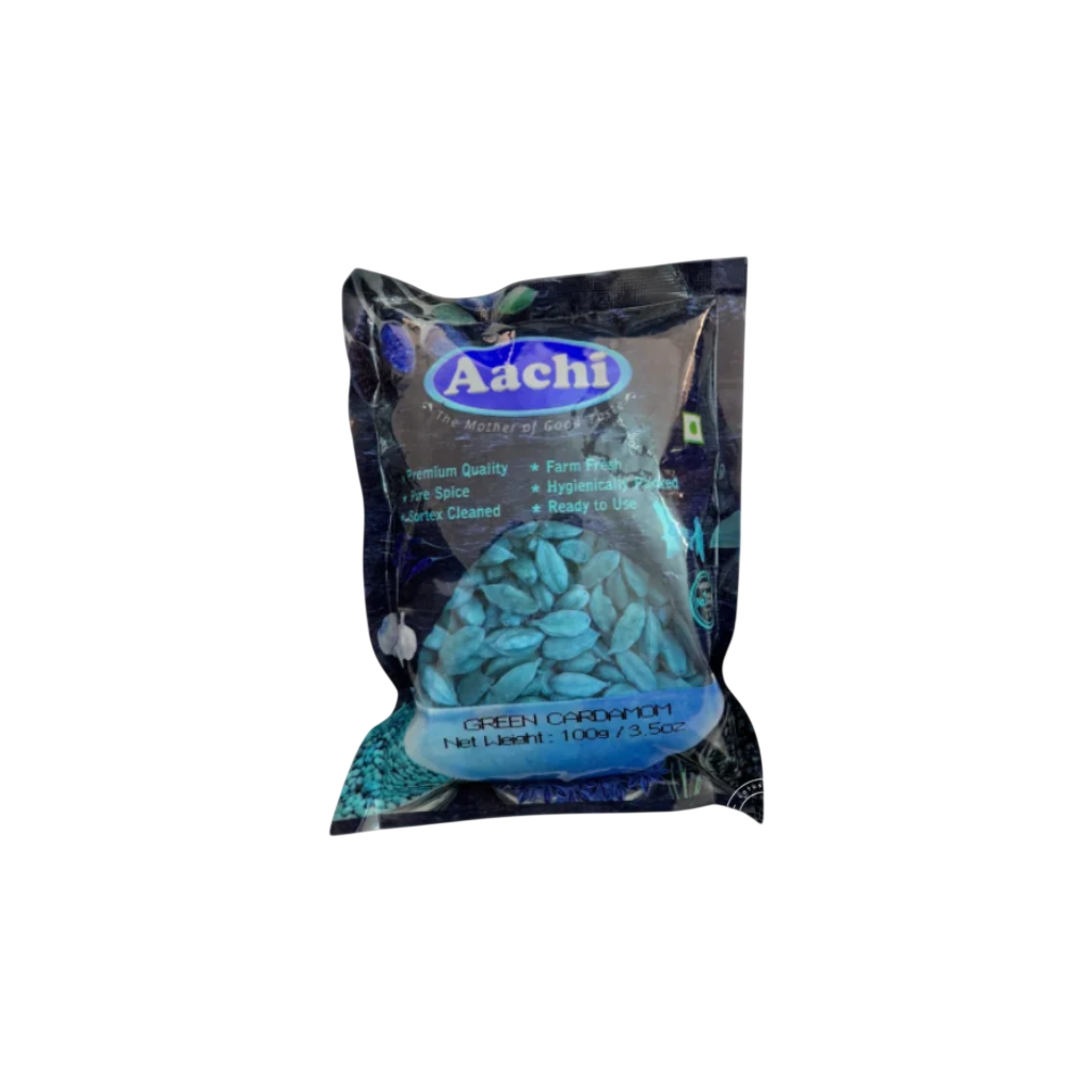 AACHI Green Cardamom is a premium whole spice with a sweet‑aromatic flavor and refreshing, floral aroma. It’s perfect for enhancing the taste of teas, coffees, desserts, rice dishes (like biryani or pulao), and sweet preparations like kheer. It can also be used in spice blends, baked goods, and savory curries to add a fragrant, complex flavor.