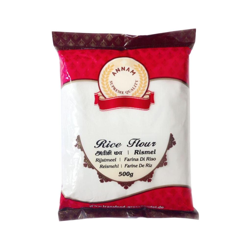 Annam Rice Flour 500g: Finely ground rice flour suitable for a variety of recipes. Ideal for snacks, dosa, and sweets. Easy to use and versatile. Essential pantry ingredient.