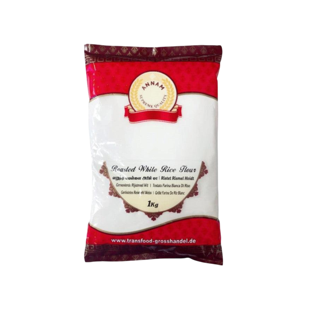 Annam Roasted White Rice Flour 1kg: Roasted rice flour with enhanced flavor and aroma. Ideal for making traditional dishes and snacks. Easy to cook and digest. Perfect for authentic recipes.