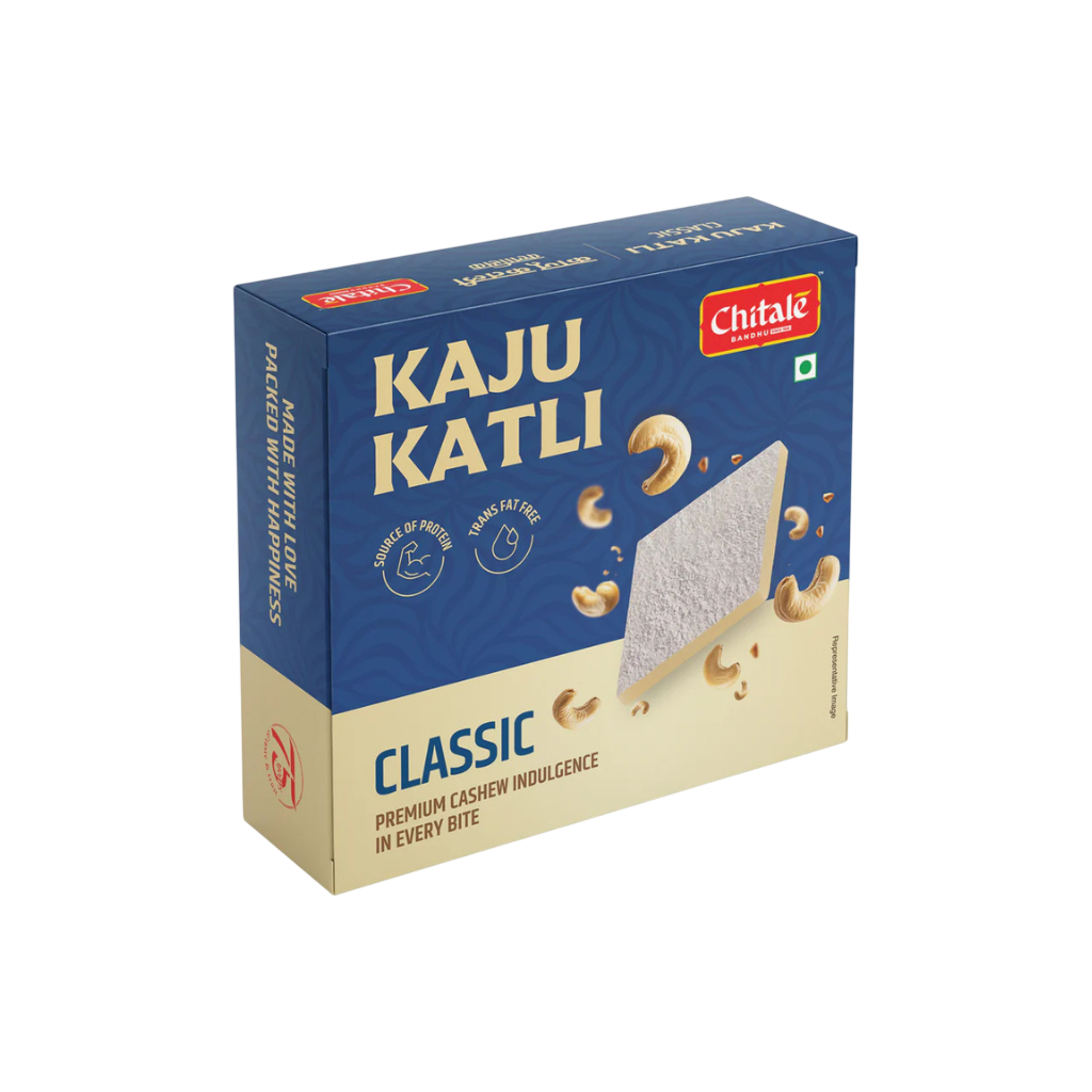 Chitale Classic Kaju Katli is a premium Indian sweet made from finely ground cashews and delicately sweetened to perfection. Known for its smooth texture and rich nutty flavour, this traditional diamond-shaped delicacy melts in the mouth and delivers an authentic festive taste.