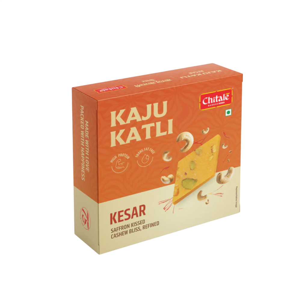 Chitale Kaju Katli Kesar is a premium cashew-based sweet enriched with the delicate flavour and aroma of saffron (kesar). Crafted from finely ground cashews and subtly infused with kesar, it offers a smooth, melt-in-the-mouth texture with a rich and aromatic taste.
