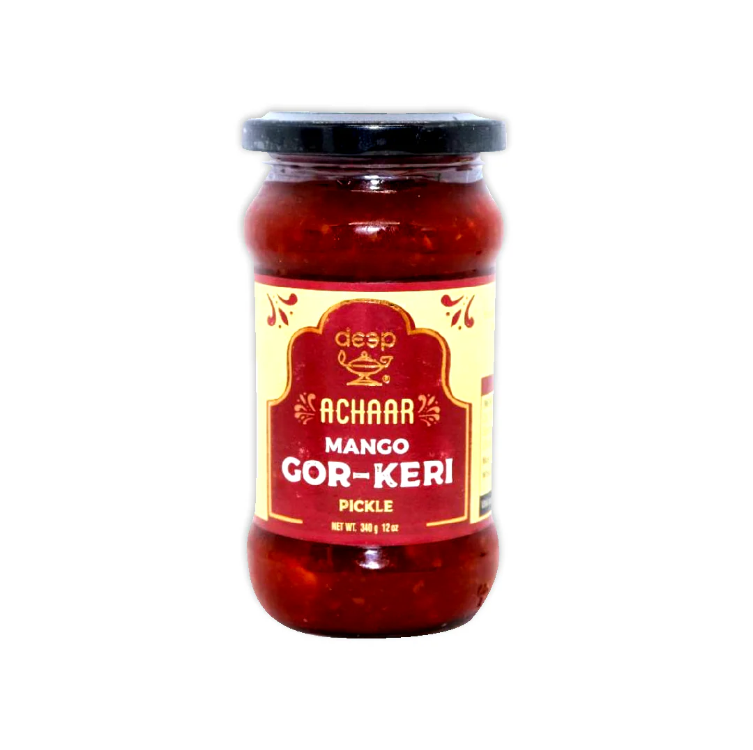 Experience the traditional Gujarati favorite with Mango Gor-Keri Pickle. Made from raw mango pieces blended with jaggery and aromatic spices, this pickle offers a unique sweet, tangy, and mildly spicy flavor that perfectly balances every bite.