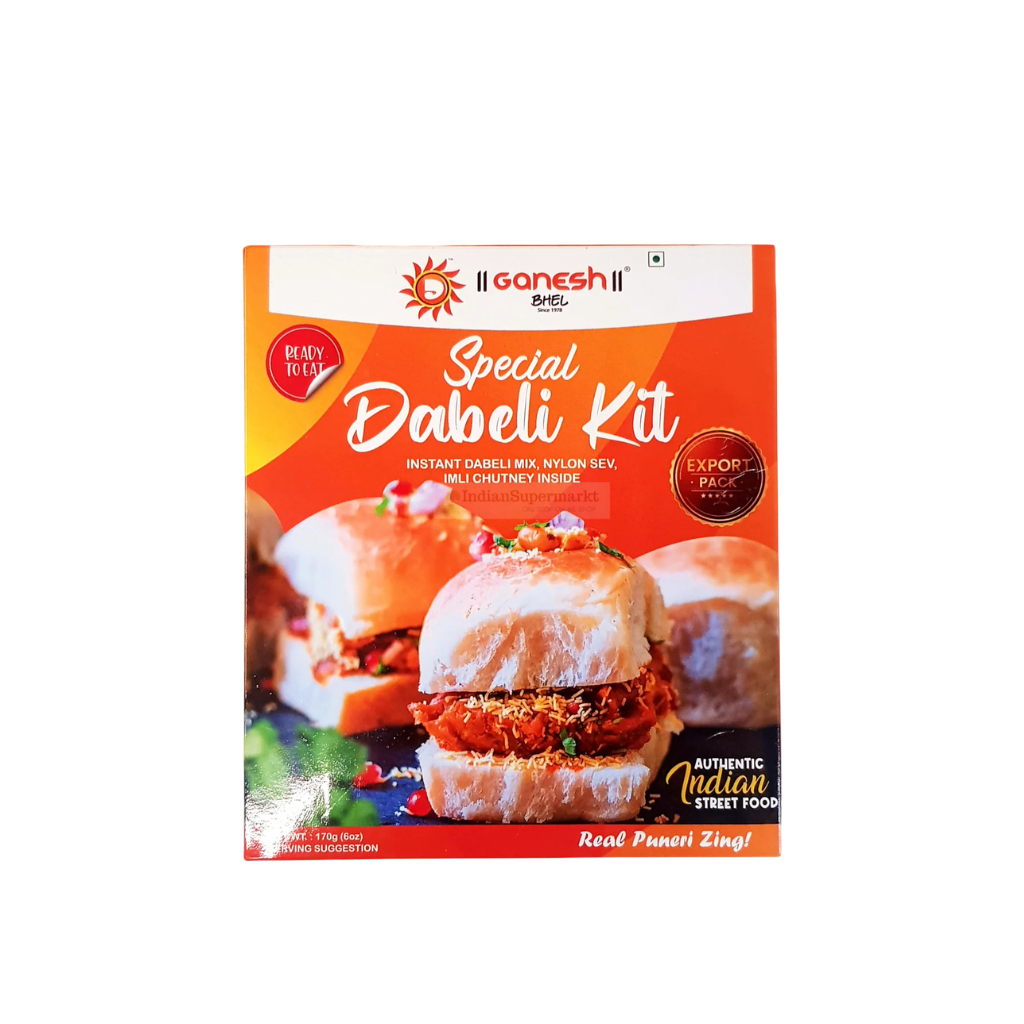 Ganesh Bhel Dabeli Kit 170g: Ready-to-use kit for making delicious dabeli at home. Includes chutneys and मसाला for authentic street food taste. Easy to prepare in minutes. Perfect for snacks and gatherings.