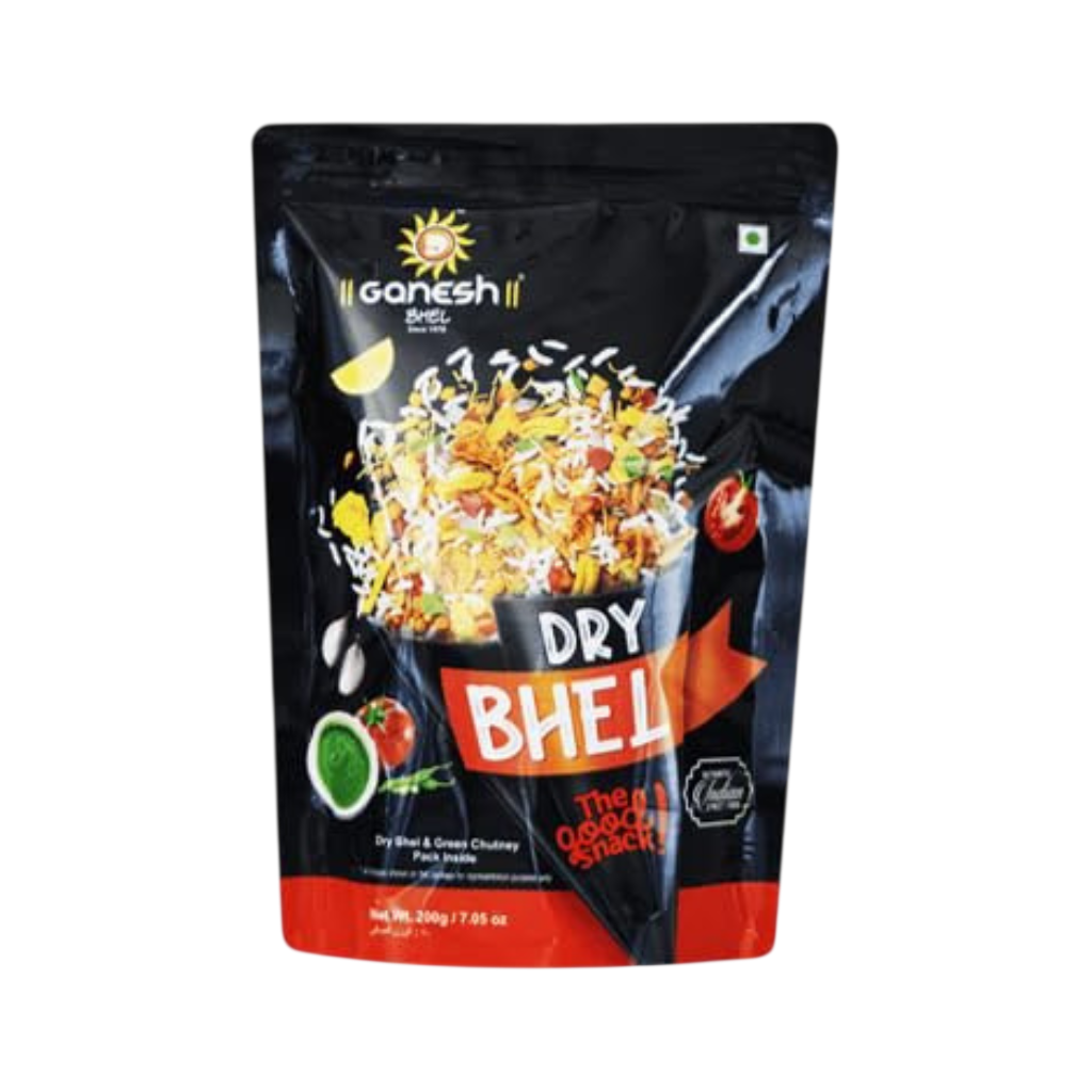 Ganesh Bhel Dry Bhel 500g: Crunchy mix of puffed rice, sev, and spices for making bhel. Light and flavorful snack option. Easy to prepare with chutneys. Ideal for chaat lovers.