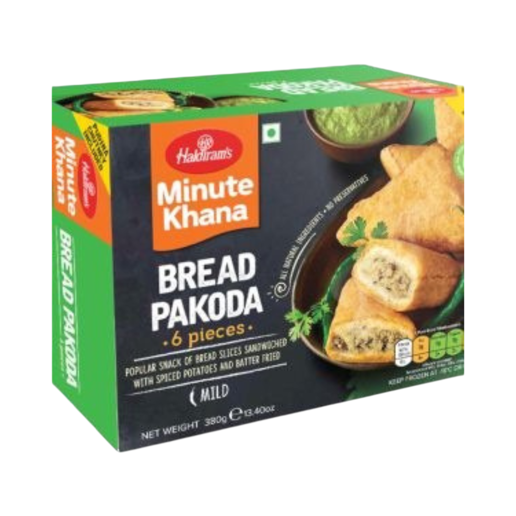 Haldiram Frozen Bread Pakoda 380g: Crispy bread fritters stuffed with spiced potato filling inspired by Indian street food. Made with a flavorful blend of traditional spices. Easy to prepare and ready in minutes by frying or baking. Perfect as a tea-time snack or party appetizer.