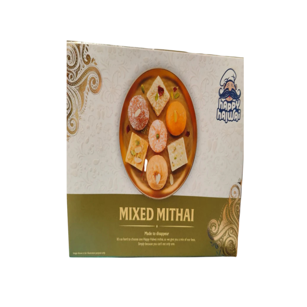 Happy Halwai Mixed Mithai is an assorted collection of traditional Indian sweets, offering a delightful variety of flavors and textures in one box. Typically featuring popular favorites such as barfi, ladoo, peda, and other classic mithai, this assortment is perfect for sharing and celebrations.