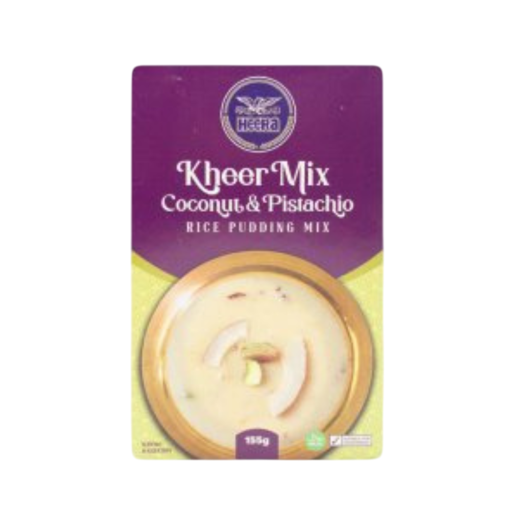 Heera Kheer Mix Coconut & Pista 155G is a ready-to-cook dessert mix for preparing traditional Indian kheer with the rich flavor of coconut and pistachio.