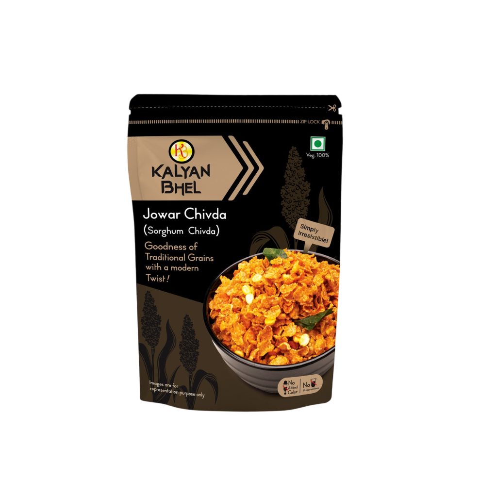 Kalyan Bhel Jowar Chivda 100g: Healthy chivda made from jowar flakes. Light and crunchy snack. Rich in nutrients. Perfect for guilt-free munching.
