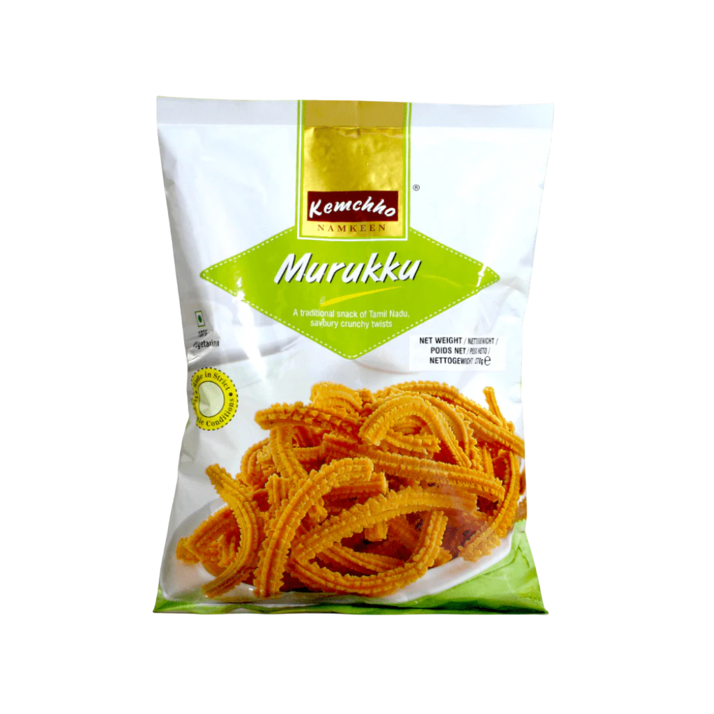 Kemchho Murukku 270g: Traditional South Indian snack made from rice flour. Crunchy and mildly spiced. Perfect for tea-time. Enjoy authentic flavor.