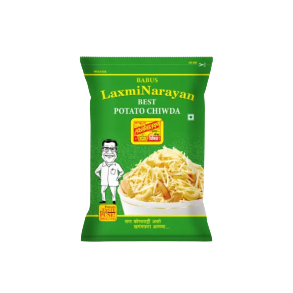 Laxminarayan Potato Chiwda: Crunchy chiwda made with thin potato slices and spices. Light and crispy snack. Ideal for everyday munching. Enjoy flavorful taste.