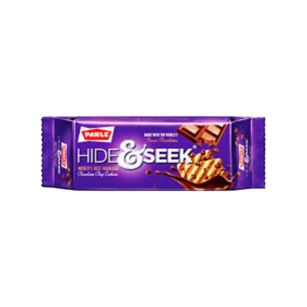 Parle Hide & Seek Choco Chip 82.5g: Crunchy biscuits loaded with chocolate chips. Rich cocoa taste with satisfying texture. Perfect for quick snacking. Enjoy anytime.