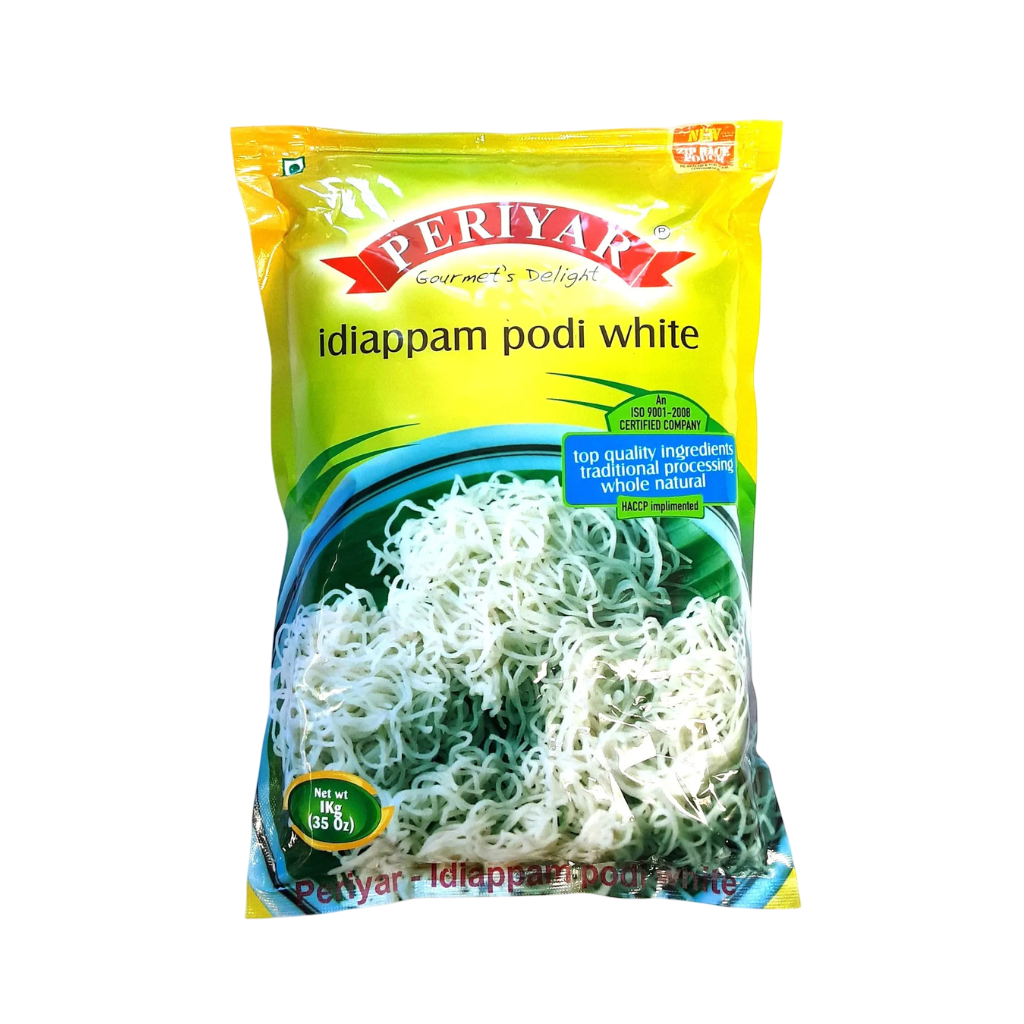 Periyar Idiappam Podi White 1kg: Special rice flour used for making soft and delicious idiappam. Perfect for authentic South Indian breakfast dishes. Easy to prepare with traditional taste. Enjoy with curries or coconut milk.