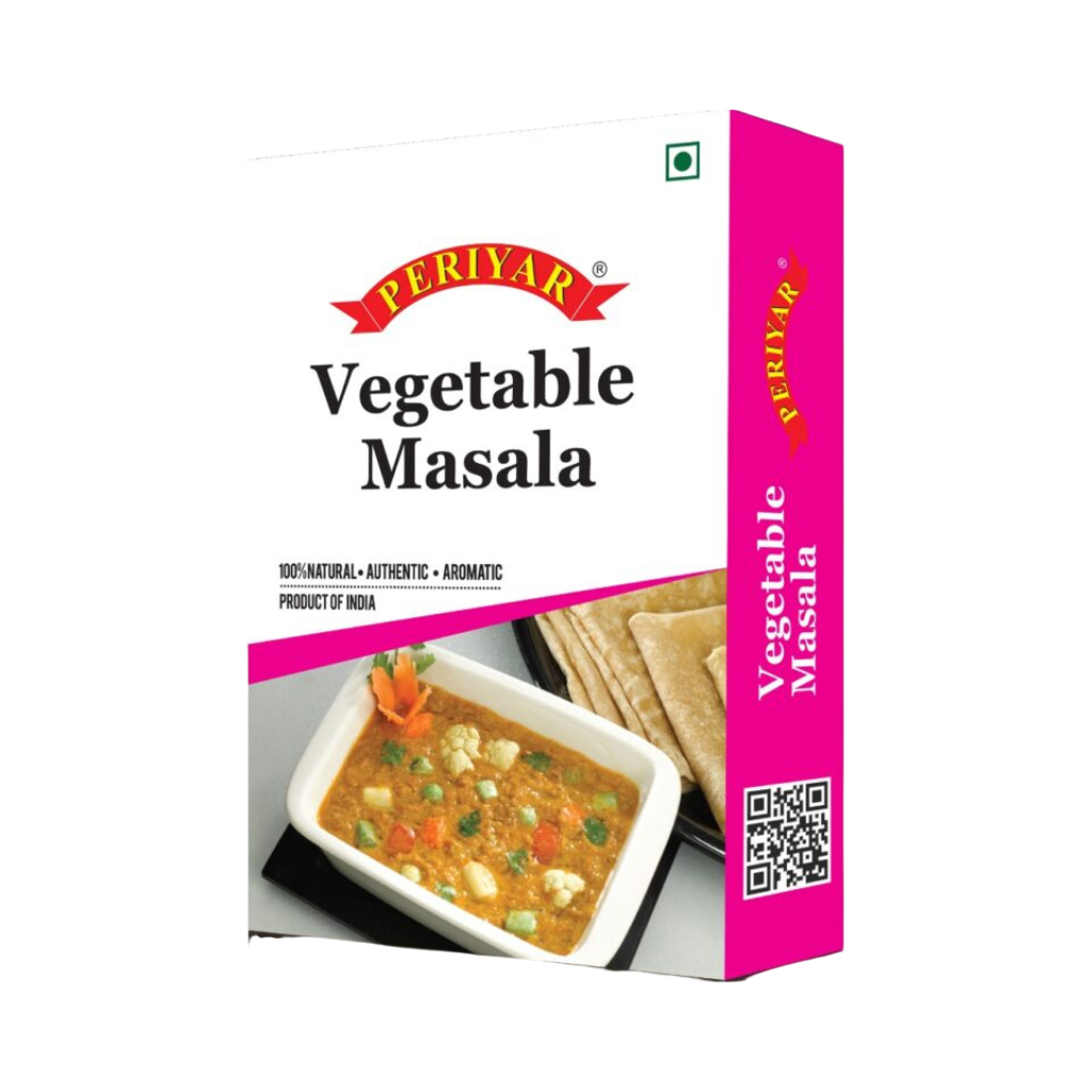 Periyar Vegetable Masala 100g: Versatile spice blend for enhancing vegetable dishes. Adds rich flavor and aroma to curries. Perfect for everyday cooking. Made with premium spices.