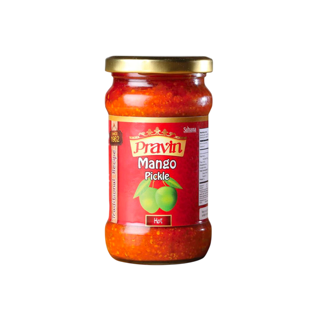 Pravin Mango Pickle Hot 300g: Spicy mango pickle made from raw mango pieces and traditional masala. Bold flavor with authentic Indian taste. Perfect side dish for rice and roti. Adds a delicious spicy touch to meals.