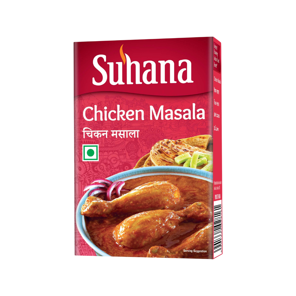 Suhana Chicken Masala 50g: Versatile spice blend ideal for preparing a variety of chicken dishes. Adds rich flavor and aroma to curries and gravies. Made with premium quality spices. Perfect for enhancing everyday meals.