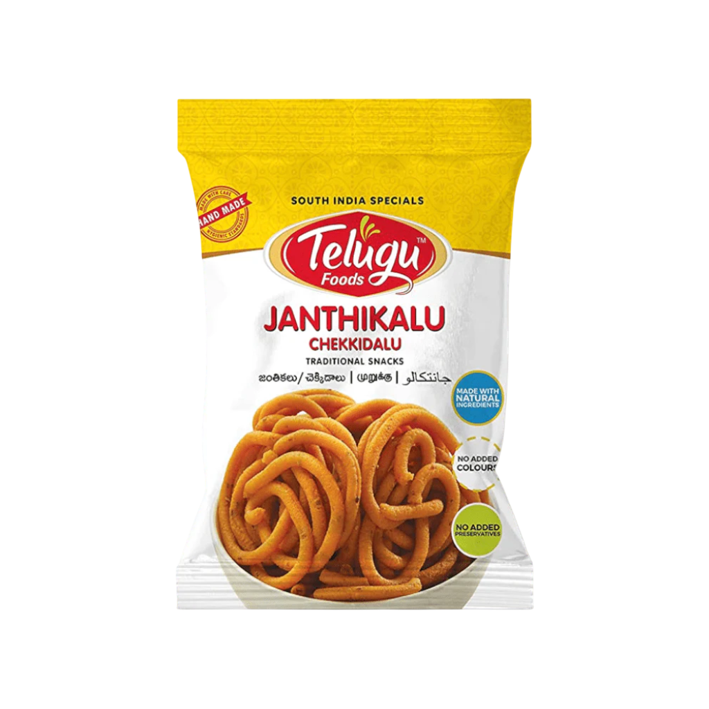 Telugu Janthikalu 170g: Traditional crunchy snack made from rice flour and gram flour with mild spices. Known for its spiral shape and crispy texture. Popular festive snack in South India. Perfect for enjoying with tea.